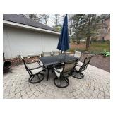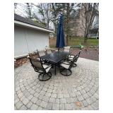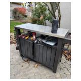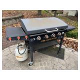 Outdoors, Blackstone grill, potbelly stove, outdoor storage, eight piece patio sets, her door, bar chart, ruler, smoker, rattan chairs planters