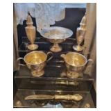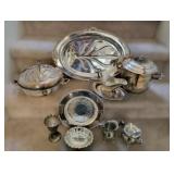 DAY 5 CHINA, PORCELAIN, CERAMIC, CRYSTAL, GLASS, FLATWARE AND SILVERWARE Rogers 4-piece silver plated tea set, Certified International Woodland Walk animal plates and 2 mugs, Baroque by Godinger flatware set for 12 plus serving pieces in chest, Waterford ARAGLIN crystal 9" barrel shaped flower vase, Mikasa Fine Ivory STANTON Gold Japan china set, glass and crystal - vases, bowls, glasses & more, Packard China - PAVILLION and Athenian, selection of pewter and silverplate, silverplate and stainless flatware, Lenox Eternal Dimension collection place settings, STERLING & Weighted sterling salt& pepper shakers, bowl, sugar & creamer & knife, Fenton Coin Dot Pink Glass vase, Bohemian and artistic hand blown glass, Lenox Federal Gold flatware, new NEW HD Designs plates, SWAROVSKI crystal swan.