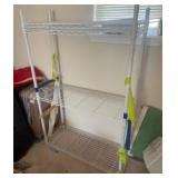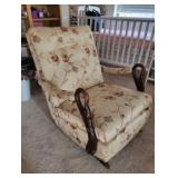 DAY 7 FURNITURE, DECOR Small dining table, dining table set with chairs, variety of shelving units, walnut office Credenza, large chrome garment clothing racks, glass top console tables, coffee and side tables, Antique 19th century Spanish walnut oval table on wheels, arm chairs and recliners, wicker ottoman, small carved wood Swiss Black Forest Feeding birds cookoo clock, table lamps, Mid-century Marble Top Drink Table Stand with Fluted Tapered Legs, Vintage Baroque style chair, nightstand, drawer chest, Large C. Jere Brass THE TREE Sculpture Wall Art 64”x46”, STAINED GLASS Panels and more!