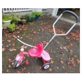 DAY 8 OTHER Children and baby items: baby feeding chair, pink grand piano, Lightweight Child Shoulder Carrier, Little Tikes Dino Cozy Coupe, Radio Flyer PINK Outdoor Toddler Tricycle with Push Handle. Musical instruments: Bach student trombone in case, Vintage Bundy Selmer Inc by Vincent Bach trumpet in original case, Washburn WG-587 Solid Body Electric Guitar in case. Beauty and clothing: Optical whitening LED beauty mask, Chanel #5 and vanity trinkets, Vincent for Louise Gerard designer brown beaver jacket with appraisal certificate 0f $2,800 Sz L, male and female jackets, costume jewelry and watches galore.