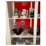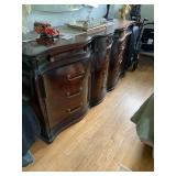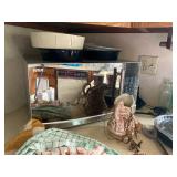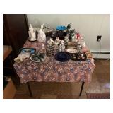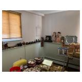 Grandmas house offers, Vintage hand painted Asian cabinet, dining room table & chairs with matching china closet, 5 piece cherry master bedroom set, sofa & loveseat, ornate coffee table, cane side chair, 50's & other assorted mirrors, recliner, bedroom furniture, desks, side tables, wardrobe, crystal, figural, hurricane & other lamps, Fisher stereo system, vintage toys, collectibles, figurines, bric-a-brac, lots of kitware, costume jewelry, garage supplies & loads more! |