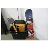 Snowboard, Wooden Tool Crate, Pair of Totes
