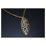 - 14kt Gold Soft Gold Mesh Necklace w/ Elliptical Pendant 14k Italy Multi strand Necklace 17in Long Pendant 54.5x19mm 5.25 grams 970106