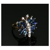 - 14kt Gold Diamond & Sapphire Butterfly Cluster Ring SZ: 6 14k Size: 6 Centerpiece: 22x20mm 6.97 grams 970107
