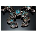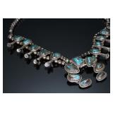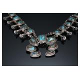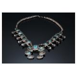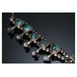 - Vintage Navajo Silver & Turquoise Squash Blossom Necklace Native American Jewelry 24.5 in long Naja: 65x71mm 150.43 grams 970109
