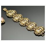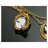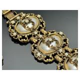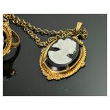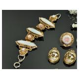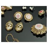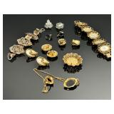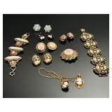 - Lot of 10 Vintage Bracelets, Earrings, Necklace, and Brooch Pin - Antique Gold Tone Cameo Necklace, Earrings, and Ring Set - Rhinestone Bracelets - Estate Costume Jewelry 9x6x1 1lb 912028