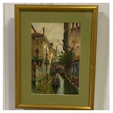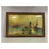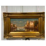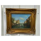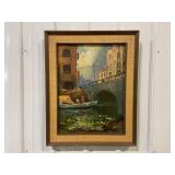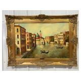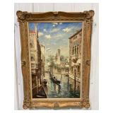 T.L. Novaretti Original Signed Framed Canvas Painting of Venice, Note Tear In Canvas On Left Side