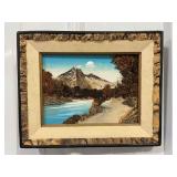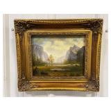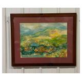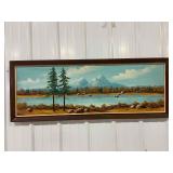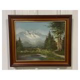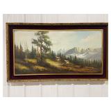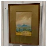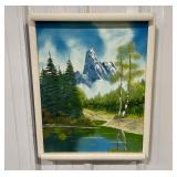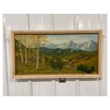 Framed Canvas Painting of Mountains, Signed By Artist