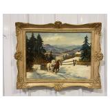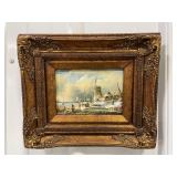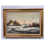H. Prohaska Framed Canvas Painting of People Ice-Skating On A River