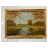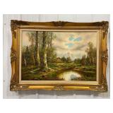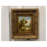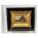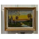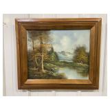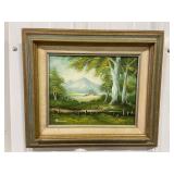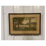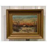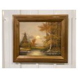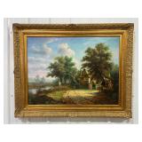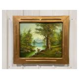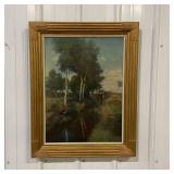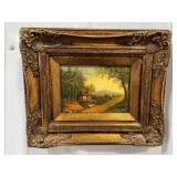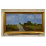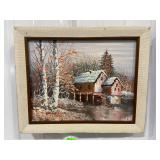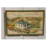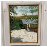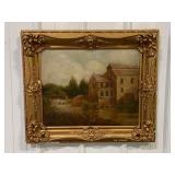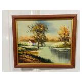 Framed Painting Featuring A House and Stream