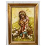 Mother and Child Framed Original Canvas Painting, Signed By Artist
