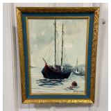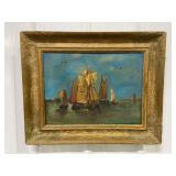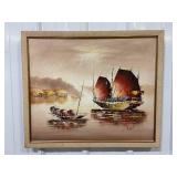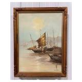 Original Framed Canvas, Painting of Ships Signed By Artist, Hikim
