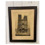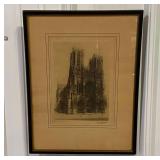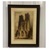 Framed Rheims Cathedral Etching