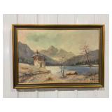 W. Landsberg Signed and Framed Original Painting of A Cabin In The Mountains, "Landsberg Ar 317" On Back of Canvas 507