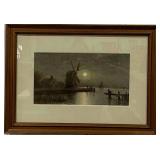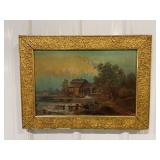Framed Painting of A Fisherman At A Watermill