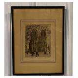 Framed Etching In Color of Notre Dame By Valer…
