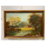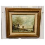 Framed Painting of 3 Cows By Creek