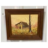 CZRL Signed Original Framed Canvas Painting of A Barn By A Pond