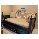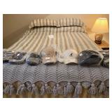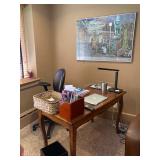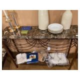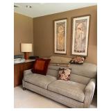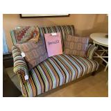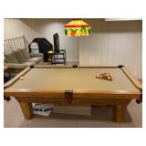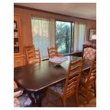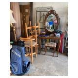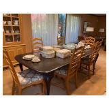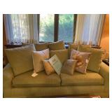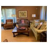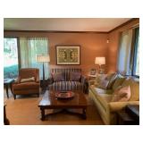 This arts and crafts style home is loaded with quality modern and transitional furniture, in show room condition and just in time for the holidays! 6 piece Bloomingdale’s light gray sofa set, dark walnut dining set with extra boards, 6 ladder back chairs and matching breakfront. Iron marble console table and pair rattan oriental style accent chairs. Contemporary master bedroom cherry chest and nightstand. King size ornate iron bed, Antique vanity bench and pale green pillow sofa. Accent stripe love seat with soft brown fabric accent chair. Contemporary coffee and side tables. Modern lamps, prints, posters, paintings, and pottery. French style writing table, walnut frame daybed, and a caramel leather swivel chair. A round oak table and 4 off-white chairs. Bar stools, Lennox, Bavaria china, sterling flatware, and silver-plate. Full patio set with round table and chairs. Pair of lounge chairs, grill propane heaters, and pool table (OLHAUSEN) with crotchet pockets. Gym equipment including, Peloton and Precor exercise bikes. A bike rack, house and garden tools. Photo enlarger, plus so much more!