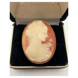 LARGE VTG POSS ANTIQUE 14K GOLD CAMEO BROOCH PIN |