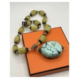 LARGE STERLING SILVER & GREEN TURQUOISE NECKLACE |