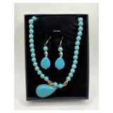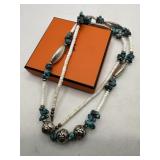 PRETTY STERLING SILVER BEADED NECKLACE TURQUOISE + |