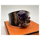 LARGE STERLING SILVER & AMETHSYT CUFF BRACELET |