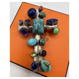 LARGE STERLING SILVER CROSS PENDANT W STONES NAKAI |