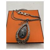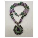 STERLING SILVER GLASS & CABOCHON NECKLACE |