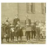 Antique c. 1890 Husband and Wife with Family Dog Sitting on House Porch Photograph on Board |