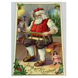 Antique 1906 Santa's Elves and Toys A Merry Christmas White Embossed Christmas Postcard |