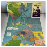 Vintage 1942 Sunoco Lowell Thomas' War Map Of The World |