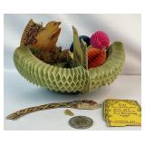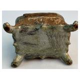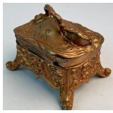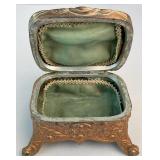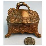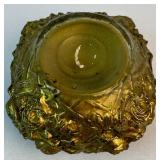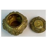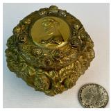Antique c. 1900 Pressed Glass Hair Receiver w/ Metal Relief Floral Top |