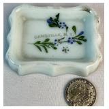 Antique c. 1890 Hand Painted Floral Dansville, N.Y. Souvenir Milk Glass Soap Dish |