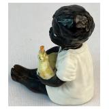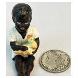 Vintage 1930's Ceramic Black Americana Boy w/ Chicken Figurine |