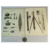 Antique c. 1820 Lot of 2 Pneumatics Book Plate Woodcut Engravings (Barometer & Aerostation) |