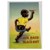 Vintage 1930's Young Boy With Airplane Air Raid and Blackout Black Americana Comic Postcard UNUSED |