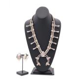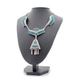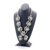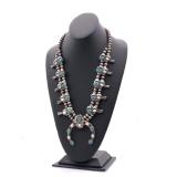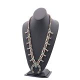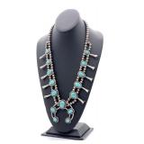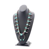 - 3013 VERO NATIVE AMERICAN STERLING SILVER ROYSTON TURQUOISE SQUASH BLOSSOM NECKLACE