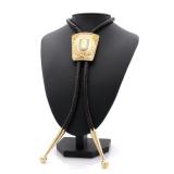 - 3003 SOUTHWESTERN SIGNED 14K YELLOW GOLD 1.35CTTW DIAMOND HORSESHOE BOLO TIE