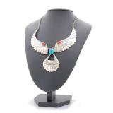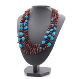 - 3534 STERLING SILVER TURQUOISE CORAL NECKLACE