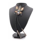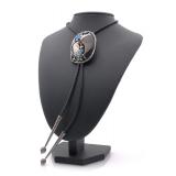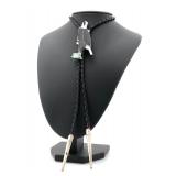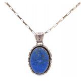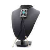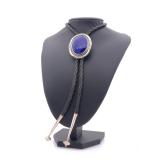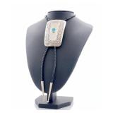 - 3040 RANDY HOSKIE NAVAJO STERLING SILVER LAPIS BOLO TIE