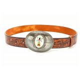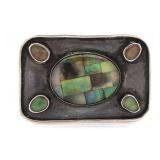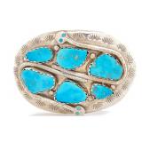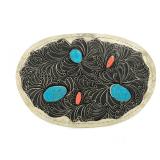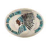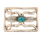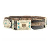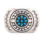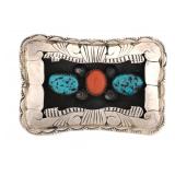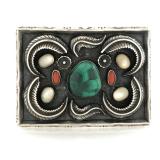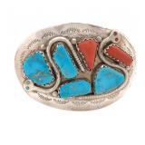 - 3044 NATIVE AMERICAN STERLING SILVER TURQUOISE CORAL BELT BUCKLE