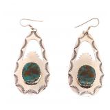 - 3020 RANDY HOSKIE NAVAJO STERLING SILVER TURQUOISE DROP DANGLE EARRINGS