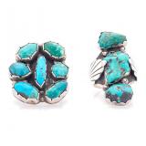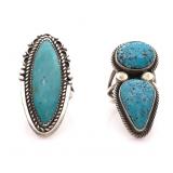 - 3048 2PC RICK MARTINEZ NAVAJO STERLING SILVER TURQUOISE RINGS