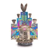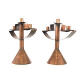 - 3051 VINTAGE PAIR OF SOUTHWESTERN MOTIF STAMPED COPPER CANDELABRAS