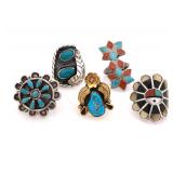 - 3518 5PC NATIVE AMERICAN STERLING SILVER INLAY RINGS