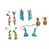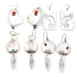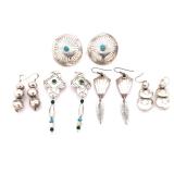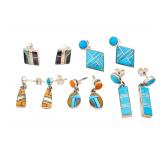 - 3062 5PR ASSORTED NATIVE AMERICAN/ SOUTHWEST STERLING SILVER EARRINGS