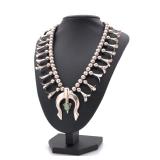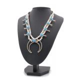 - 3000 VINTAGE NATIVE AMERICAN STERLING SILVER TURQUOISE MOTHER OF PEARL SQUASH BLOSSOM NECKLACE