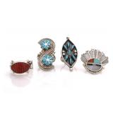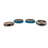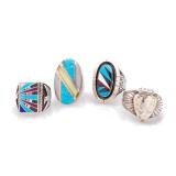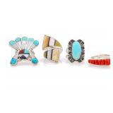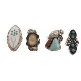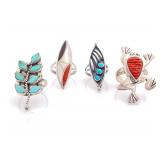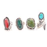 - 3553 4PC NATIVE AMERICAN STERLING SILVER GEMSTONE RINGS