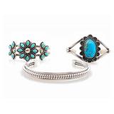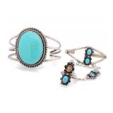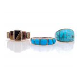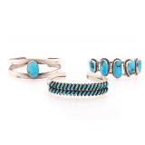 - 3594 3PC NATIVE AMERICAN STERLING SILVER TURQUOISE & JET CUFFS